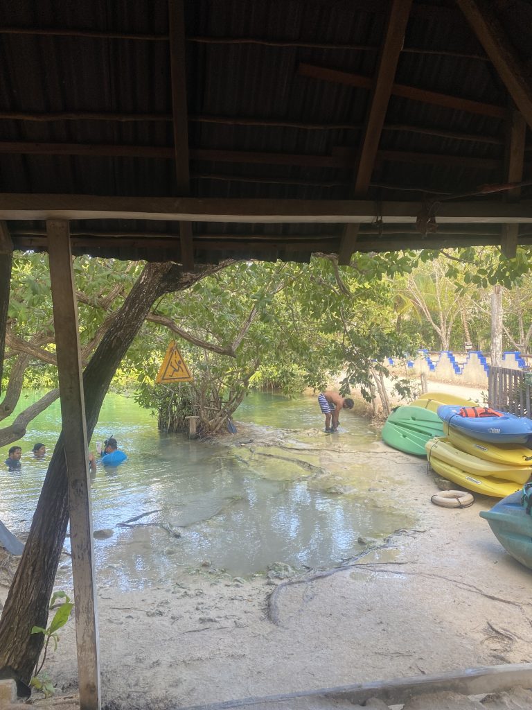 Heute geht es mir schon deutlich besser als gestern. Also sind David und ich zu der Cenote „Casa Cenote“ gefahren. Das ist halb eine  Cenote / halb eine Mangroove. Dort soll es anscheinend auch ein Krokodil geben. Also haben David und ich uns auf die Suche danach gemacht. Wir konnten es leider nicht finden.