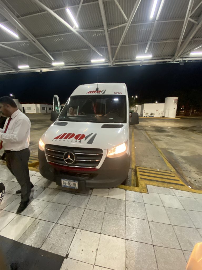 Heute haben wir uns von Isla Mujeres verabschiedet und sind erst mit der Fähre nach Cancun und dann mit einem kleinen Bus nach Valladolid gefahren.