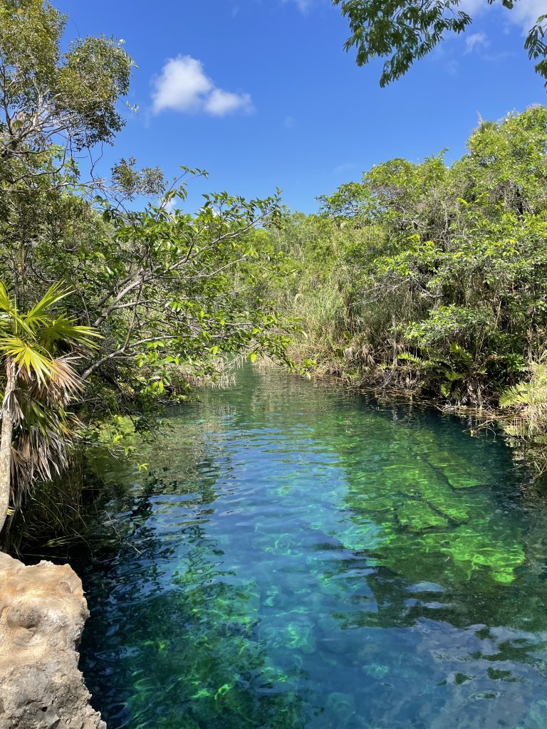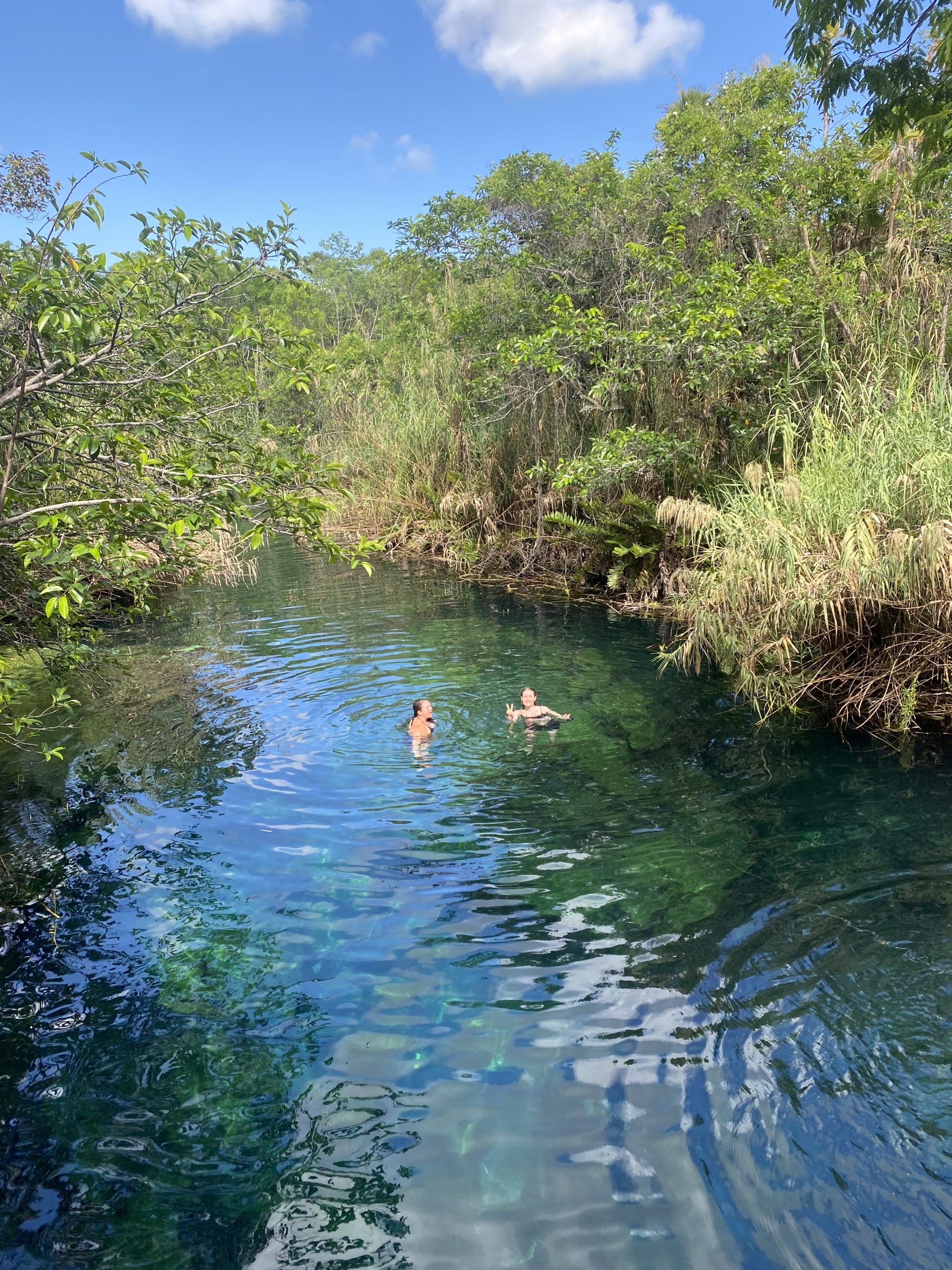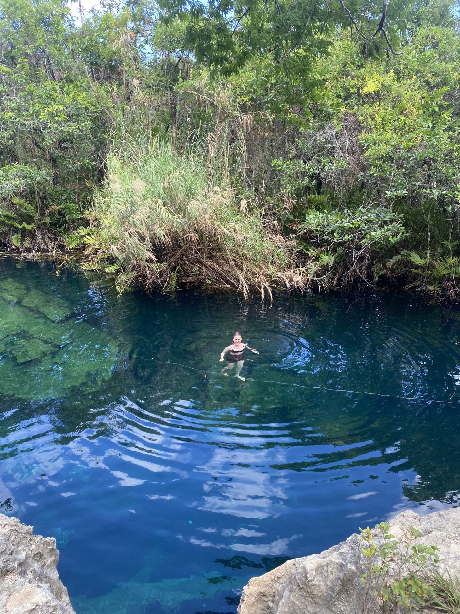 Heute waren Hannah und ich in einer Cenote. Das war bis jetzt die beste Cenote. Diese war ca. 8 Meter tief (perfekt zum Free Diven), hatte am Rand Hängematten zum chillen (wichtig für mich) und dort habe ich sogar eine Schildkröte gesehen. Abends um 9 Uhr im Hostel, ist mir noch eingefallen, dass ich noch nicht meine Wäsche geholt habe und wir morgen früh um 09:55 gehen müssen. Also bin ich schnell zur Wäscherei und tatsächlich haben sie extra für mich nochmal kurz aufgemacht (Mexikaner sind einfach die Besten!).