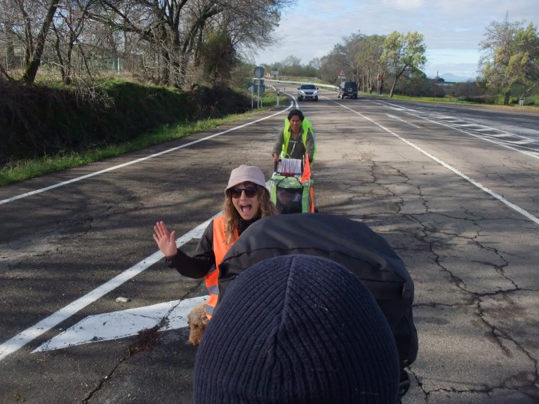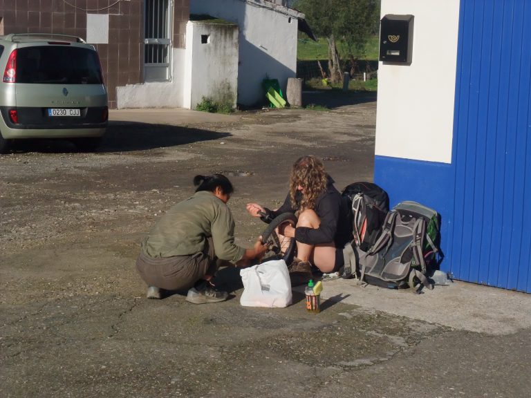 Die Nacht war super, aber um 09.00 geht es wieder komplett müde auf den Weg. Der Fahrradwagen hat einen Platten und Joy und Dy flicken den Reifen bei einer Werkstatt. Ich schreibe solange mein Tagebuch weiter. Um 11.30 Uhr gibts die erste Frühstückspause. Ich esse Baguette mit Nutella. Die beiden ernähren sich übrigens vegan. Wenn man einen Kocher wie sie dabei hat, ist es gut möglich. Wenn man aber nur in Restaurants ist, wird das echt schwer. Spanische kleine Dörfer haben generell schon eine kleine Auswahl an vegetarischen Gerichten. Um 13.30 waren wir in Banos de Montemayor. Stolze Tagesetappe von 9,6km. Irgendwie komplett am Ende (wahrscheinlich von gestern und der Hitze heute) machen wir eine Pause in einem Cafe. Sie laufen aber noch 12km weiter und ich schlafe in dieser Stadt. In der Herberge habe ich Claudia (46) kennengelernt, welche auch von Santiago aus in Süden läuft. Abends waren wir noch etwas trinken in einer Bar.