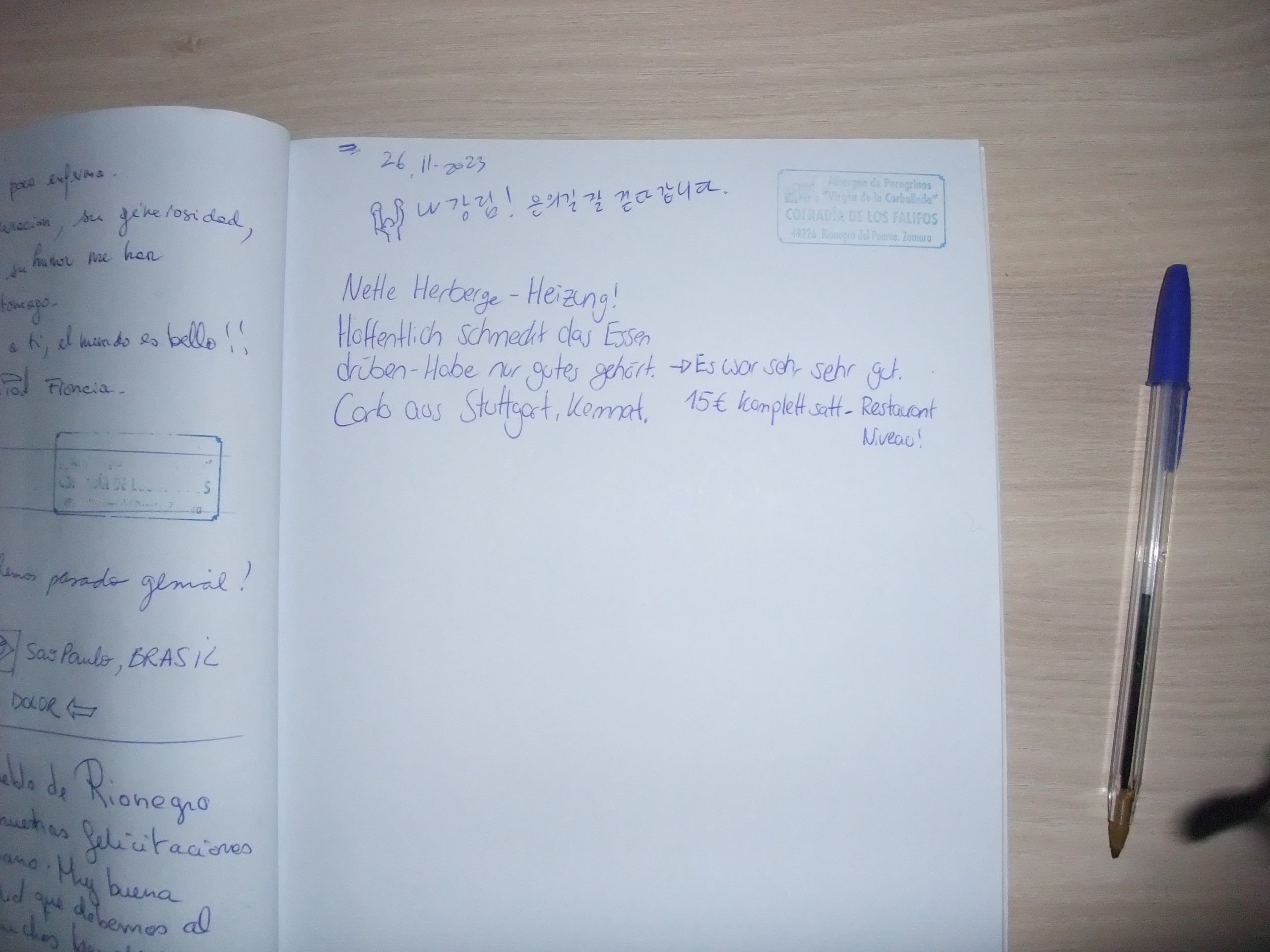 08.25 Uhr ging es heute los. Gestern habe ich alle meine Sachen gewaschen. Reicht wieder für 1 Woche. Täglich wasche ich jetzt wieder nur T-Shirt und Unterhose. Der Jakobsweg läuft sich wieder richtig schlecht heute, also ab wieder auf die Bundesstraße. Um 10.30 esse ich eine riesige Empanada für 10,50€. Ich verspeise das ganze Ding direkt. Ich treffe ein Pilgerpaar aus Barcelona, welches meinte, dass meine Mama bestimmt froh ist wenn ich weg bin, denn so ist der Einkauf zu Hause viel günstiger :). Ich stimme ihnen zu. Die restlichen 14km laufe ich auf der Straße. Ein krasses Gefühl 14km geradeaus auf der Straße (dem Standstreifen) zu laufen. Diese Distanz ist sooo lange. Von Kemnat bis nach Stuttgart sind es ca. 8km. Mir vorzustellen diese Distanz fast 2x zu laufen, kommt mir so lange vor. Die Straße zieht sich lang wie ein Kaugummi. In dem Dorf angekommen finde ich die Herberge nicht, aber glücklicherweise einen Pilger mit Handy! Die Herberge (in einer Sporthalle drinne), ist genau so wie ich mir eine Herberge vorstelle. Kalt-Weiß-Nass mit einfachen Betten.