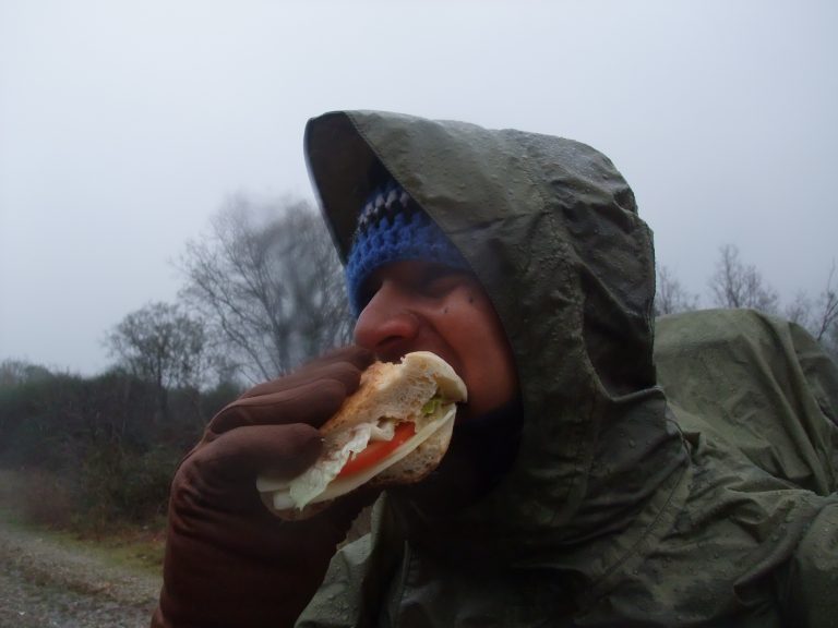 Herausforderung: Den kompletten Tag im Regen zu laufen und mich auf die nächsten 7 Tage bis Santiago jeden Tag auf Regen und nässe einstellen