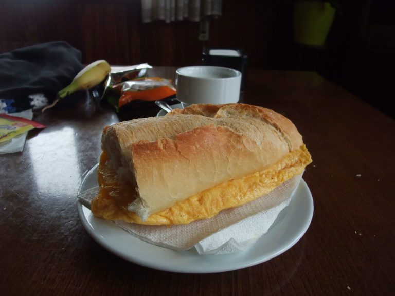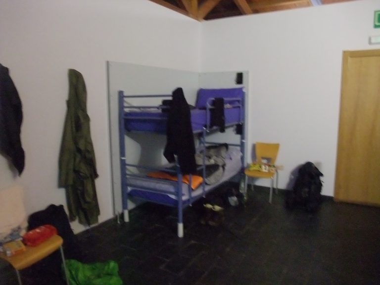 Heute gibt es den 2. Pass. Diese Nacht war ich nur mit Roman in der Herberge. Ich vermisse meine 2 Koreaner Freunde. Gerade als ich an sie gedacht habe, laufen sie aus einer anderen Herberge raus. Wir fallen uns in die Arme und „reden“ ein bisschen wie die gestrige Etappe war. Dann läuft jeder in seinem Tempo weiter. Heute regnet es wieder richtig schön aus den Wolken. Ich entscheide mich auf der Straße zu laufen, denn ich habe von vielen anderen Pilgern gehört, dass der Jakobsweg ein einziger Fluss sein soll, wenn es so viel regnet. Nach 3h mache ich pause unter einem „Baum“ und esse Oreos und eine Banane. Der Regen wird stärker und meine Füße sind wieder klitschnass. Dazu fängt mein rechter Fuß jetzt auch noch an, am Zungenende auf der oberen Seite, zu schmerzen. Egal, ick laufe weiter. Beim Laufen fällt mir ein Oreo auf den Boden und ich bin sauer. Es ist kontinuierlich am regnen hier. So eine komische Region. Wer will hier wohnen? Irgendwann gegen 16.00 Uhr bin ich in der Herberge angekommen nach 26km (Wieder eine Hammer Leistung!). Ich treffe wieder die 2 Koreaner und der eine erzählt mir stolz von seinen fast 500€ teuren wasserfesten Wanderschuhen. Auf die Frage, wieso er kein Poncho hat, meint er, die 70€ dafür seien ihm zu teuer. Er läuft lieber im T-Shirt.
