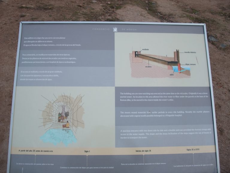 Ich will erstmal zum Friseur. Heute ist aber schon wieder Feiertag. Wow haben die Spanier in den letzten Tagen oft Feiertag. Donnerstag: Feiertag; Freitag: Läden offen; Samstag: Halber Tag offen; Sonntag: Feiertag; Montag: Feiertag. Für einen Pilger auf dem Weg sind Feiertage fatal. Danach begegne ich einem Typ auf der Straße, welcher extrem vor sich hin hustet und paar Mal einfach so auf dem Boden kotzt um 11:30 Uhr. Anschließend habe ich noch eine Burg besucht, denn Merida war einst einer der Hauptsitze des Römischen Reiches. In der Burg gibt es Zitronenbäume und ich nehme mir eine mit für das Abendessen. Außerdem fasse ich viele Dinge an, welche ich nicht anfassen darf, für den Kick. Solange bis ein Security mir auf den Spuren ist und ich verschwinde. Das Spannendste an der Burg finde ich, wie sie sich Zugang zu gefiltertem Wasser verschafft haben. Sie haben nämlich einen Schrägtunnel gebaucht, welcher unter den Wasserspiegel des Flusses geht. Der Fluss fließt außen neben der Burg. Durch die Steine wurde das Wasser gefiltert.